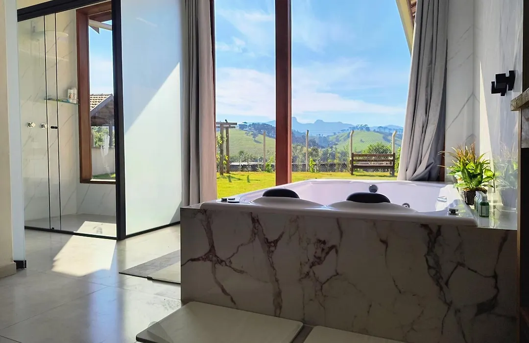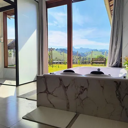 Von einer Terrasse der Casa Bela Vista -Hidro - Wifi -Proximo Restaurantes E Pizzarias aus können Gäste einen Ausblick auf die Berge genießen. Zur Ausstattung des Badezimmers gehören auch eine Wellness-Badewanne, ein Whirlpool und eine getrennte Toilette. Handtücher sorgen ebenfalls für Ihren Komfort.